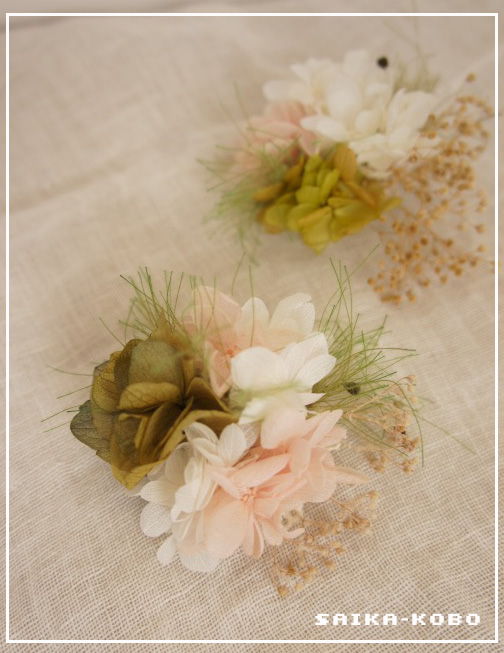 プリザーブドフラワーで作っていますので、