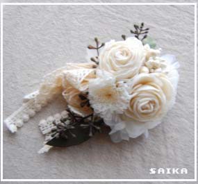 ↑コサージュや、アクセサリのテーブル♪