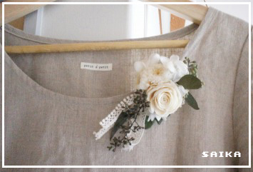 コサージュをつけて