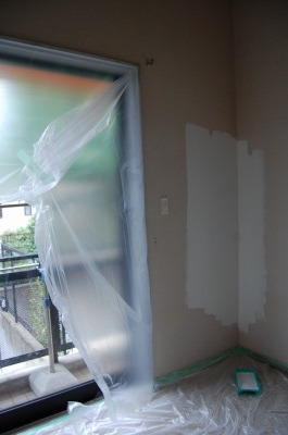 もともとの壁に白いペンキを塗っていきます。