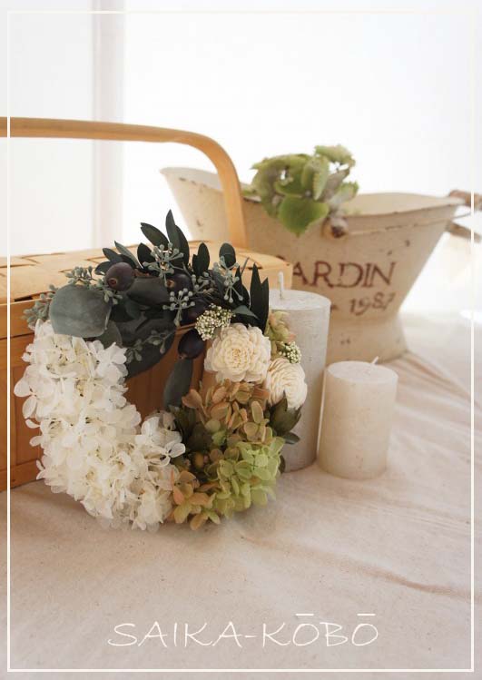 SAIKA-KOBOの特徴的なリースを作っていただきます^^
