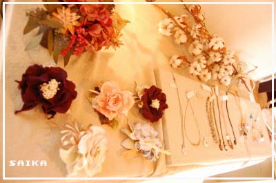 ↑コサージュや、アクセサリのテーブル♪